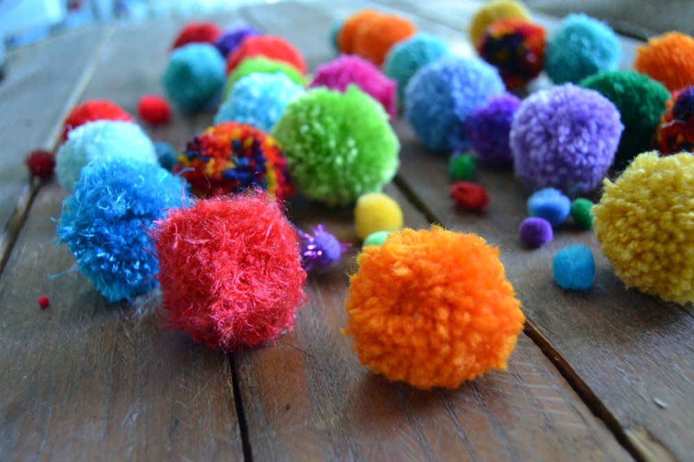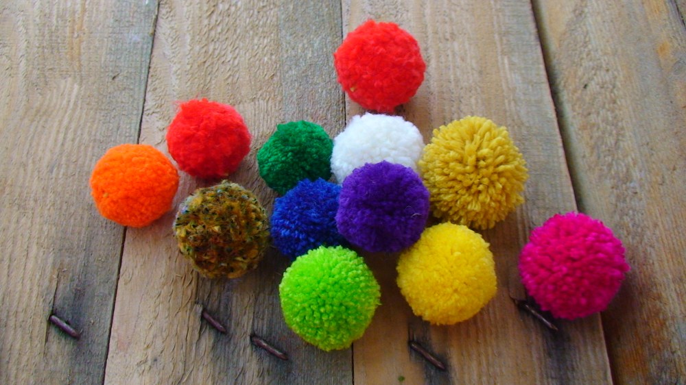 I have a set of pom pom makers that are plastic that come in assorted sizes that I got from a Klutz book years ago. But you can make your own pom pom disc using cardboard paper. Just trace different sizes of lids to use for your templates.