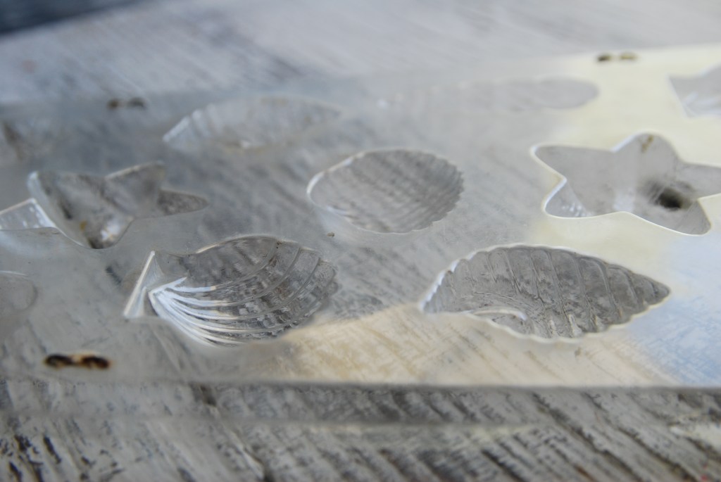 Let the wet mold dry for awhile. I live somewhere where it is super dry so it doesn’t take long at all for me to pop the item out of the mold. I just turn it over and gentle pop out the tiny plaster shells.
