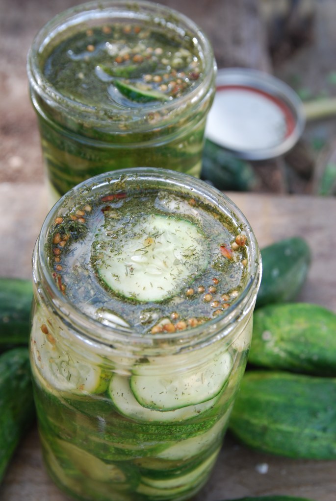Cut up cucumber and in a glass jar add all ingredients you want to pickle. I added about a teaspoon of dill.