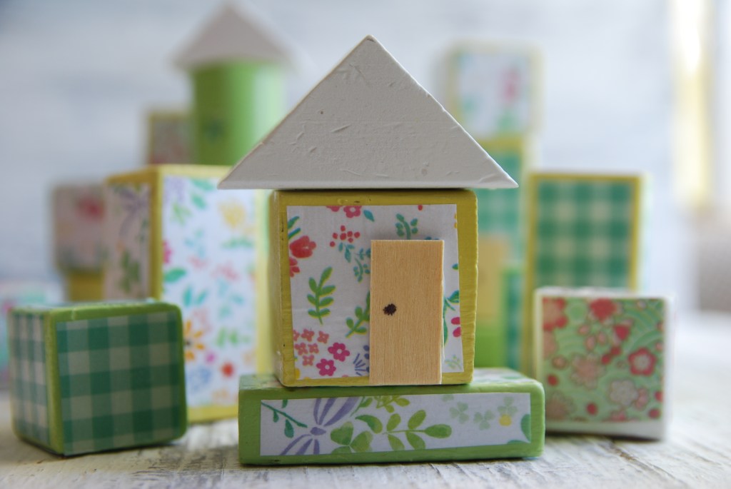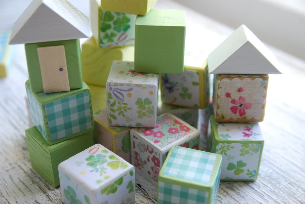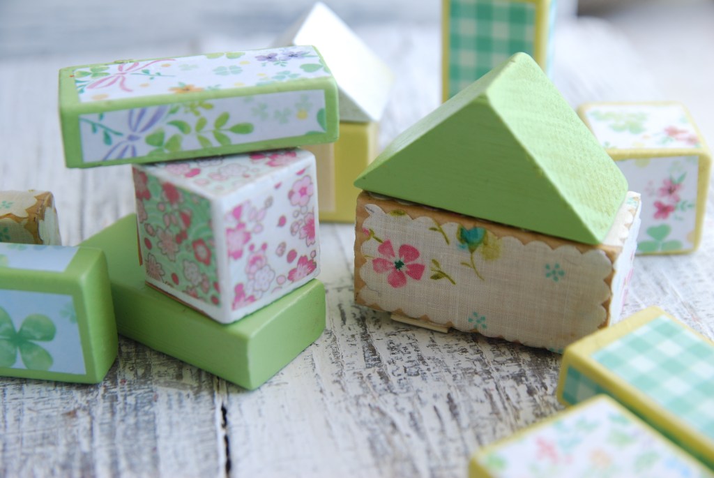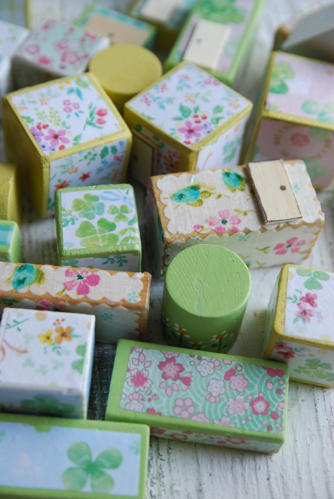 Once your blocks are painted you can decoupage fabric or pretty paper to them.