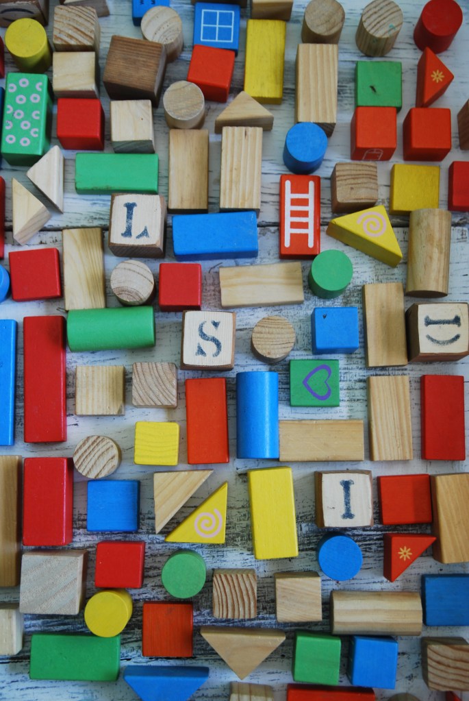 First you have to find a bag of old wooden blocks. They are usually at yard sales, flea markets, rummage sales, estate sales, church sales…you know, all those second hand places to shop. I picked up my giant bag on one of those dollar days in the grab bag sections in the toy area at Goodwill.