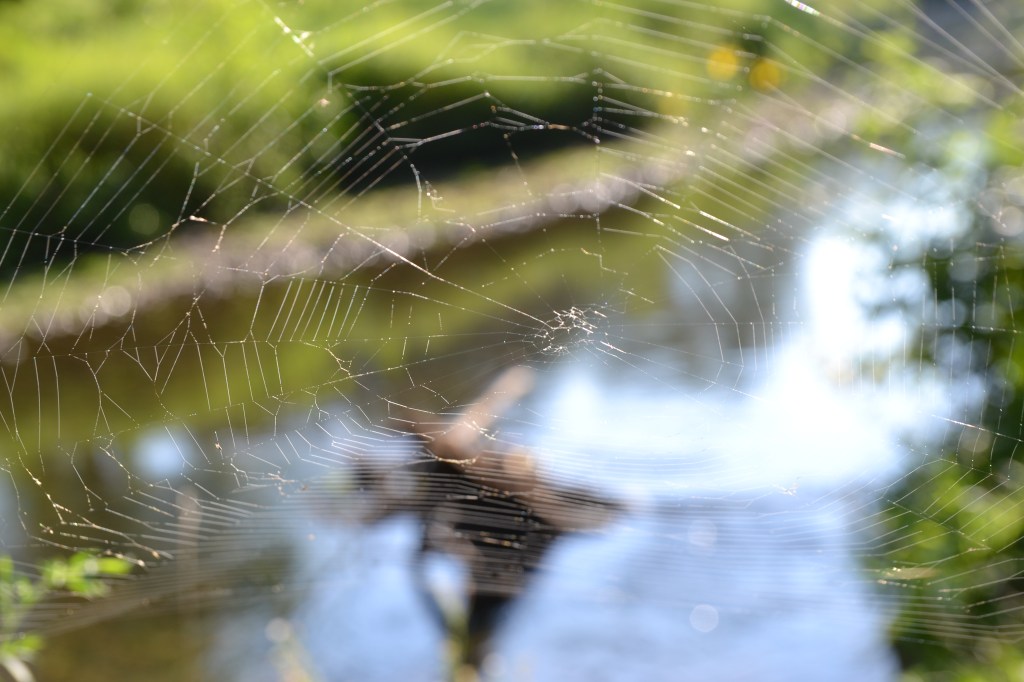 I have to get closer. That’s when I come across a beautiful web as it reflects the early morning light off of it. Must of been a busy spider working all night to create the web, I didn’t see this web two mornings ago on my walk.