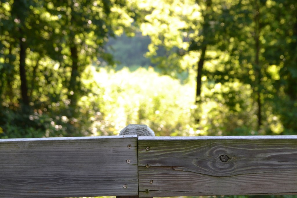 I stop for awhile at the bridge before I head off into the dark woods. Looking over the water, just standing there listening to the quiet sounds of nature. Actually not so quiet really, but perfect to me. In the distance, way, way off in the distance…I hear modern sounds…a train.