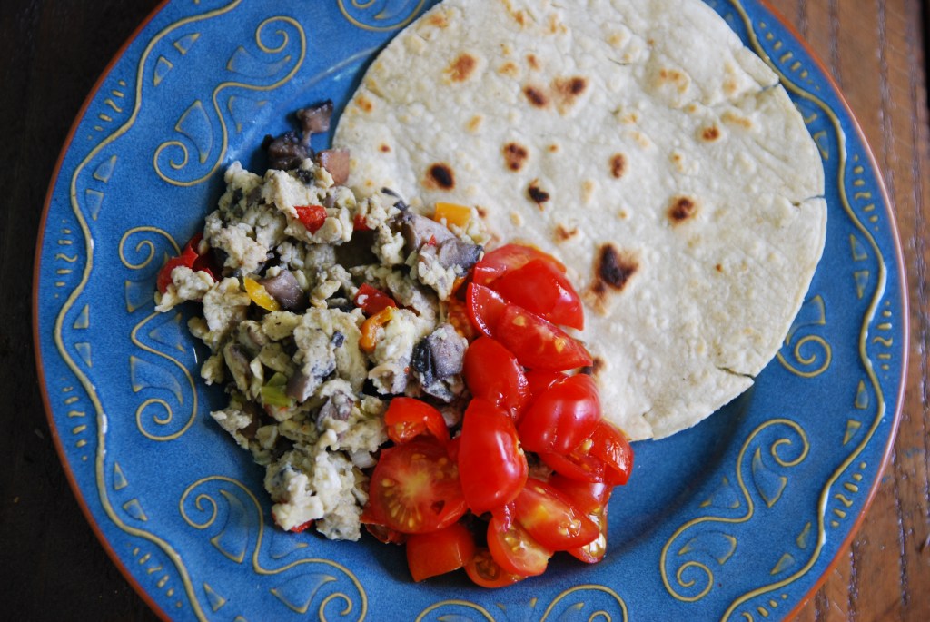 Warm up tortillas on pan with about a tsp. of Olive oil. Cover and set aside warm corn tortillas. We cook in cast iron. Add a little olive oil in pan then add diced onions, and bell peppers. Cook for awhile until softened, then add chopped mushrooms and cook those in mixture until soft. Beat 6-7 eggs ( I was taught to add a small amount of milk to my scrambled eggs, this is optional) add eggs to mushroom/onion/bell peppers, and scramble together. You can add extra ingredients to your egg tacos like fresh avocado, or garden cherry tomatoes. Add salt and pepper for taste and top with salsa of you choice.