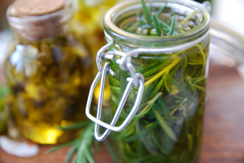 Rosemary olive oil- fill a glass jar with fresh rosemary and olive oil with an airtight lid. Refrigerate as soon as possible.