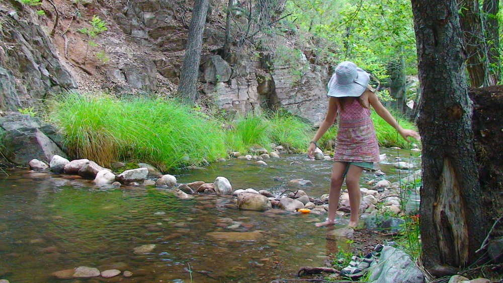 We would find a nice picnic table and bring our books and papers to work on math and reading, the basics. Our kids were very young and the lessons weren’t too complicated. Sometimes a phonics game or counting puzzles was the math lesson for the day and science was what ever we discovered walking around the creeks, studying plants and critters we would come across. Little bugs, frogs and tadpoles. It was all worked into moments to teach.
