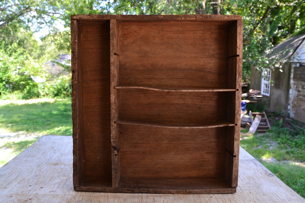 One of my projects is this old drawer organizer in photo above. Right now it’s filled with all kinds of furniture hardware. Old doorknobs, drawer knobs, hinges and other things I have no idea what they are used for…just hardware stuff. It will be a great display cabinet for the garden shop.