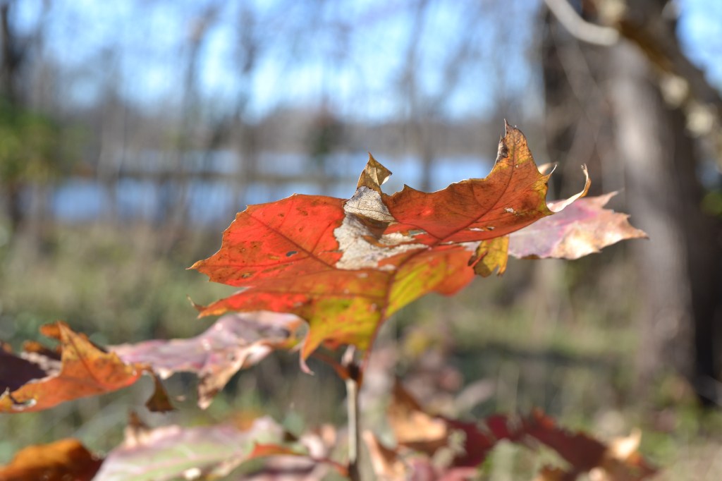 There is a cold front headed our way so I walked down to the little lake to take a walk around all those colorful leaves that are still hanging in there before they’re all gone.