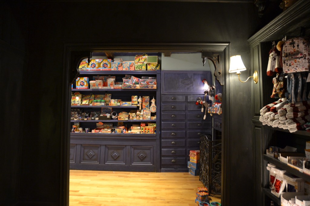 Most of the nostalgic toys were in those rooms. They had music playing. I believe it was from the Harry Potter movies which I also have never watched. I have seen bits and pieces of it in trailers but I never watched the series, either have my kids. Their grandpa got the whole series for them, and my daughter tried to watch one but she didn’t really get into it. Also that vampire series, what was it called…with a bunch of teenage vampires and wolves. My kids never got into that either…now Star Wars…WOW…big Star Wars nerds, and I write that lovingly. We all love watching Star Wars.
