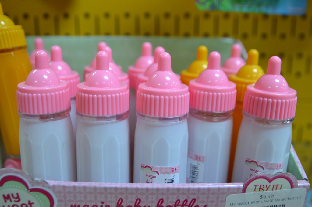They have toys that I remember as a kid, like these baby bottles. I had one for my baby doll when I was a little girl. The milk disappears when you move it up and down while feeding your baby. That was one of my favorite toys from the past.