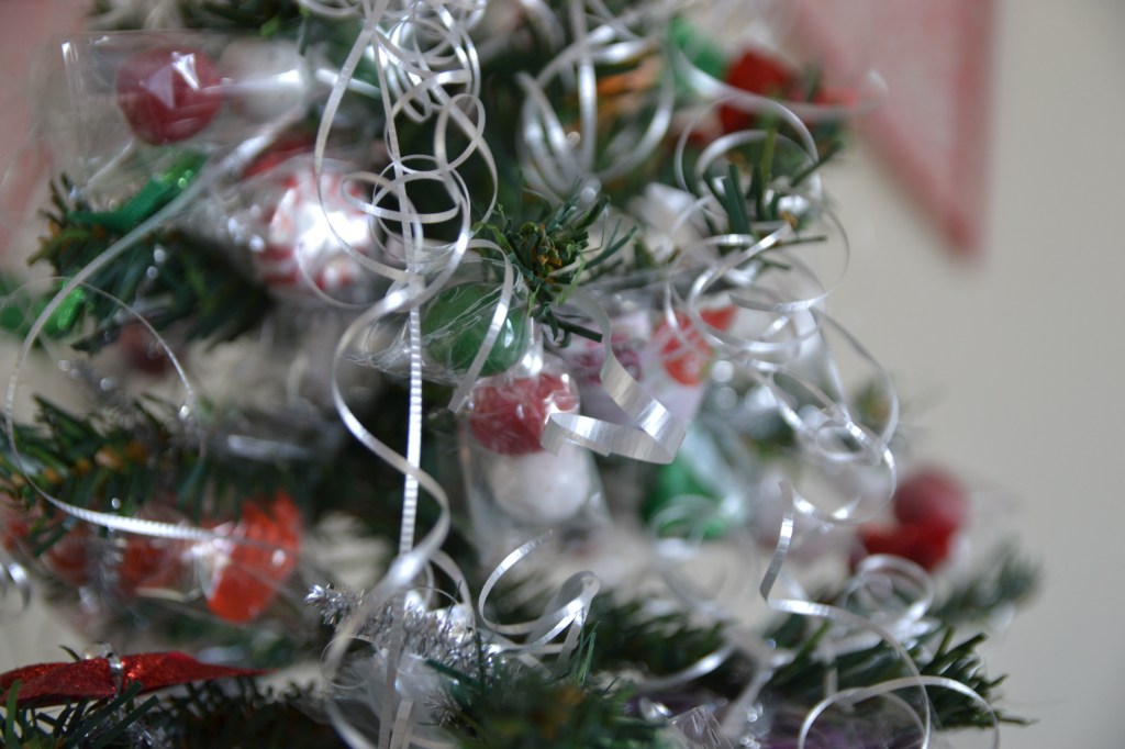 All you need is a small desk tree, an assortment of candies, pipe cleaners, and wrapping accessories. Wrap your candies and tie to trees using pipe cleaner twists. Add ribbon and a pretty bow to top of tree. There you go…a candy tree for something to sit on a table or desk for everyone to share treats with. The twisty ties make it easier for people to remove the candy from the tree.