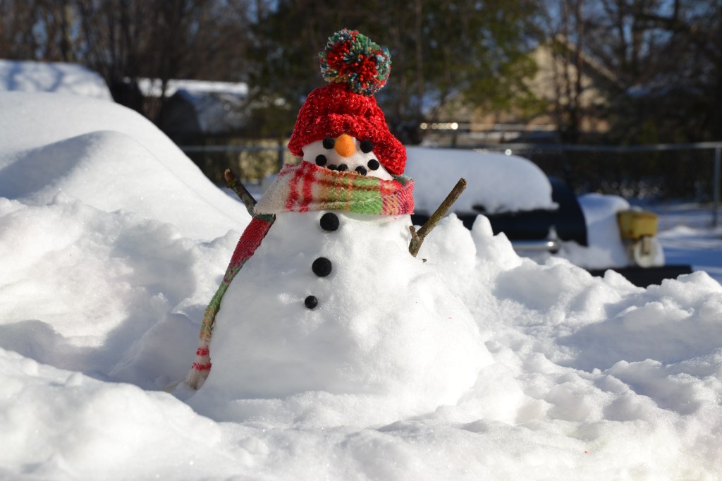 My snowman is melting, his face shrunk.