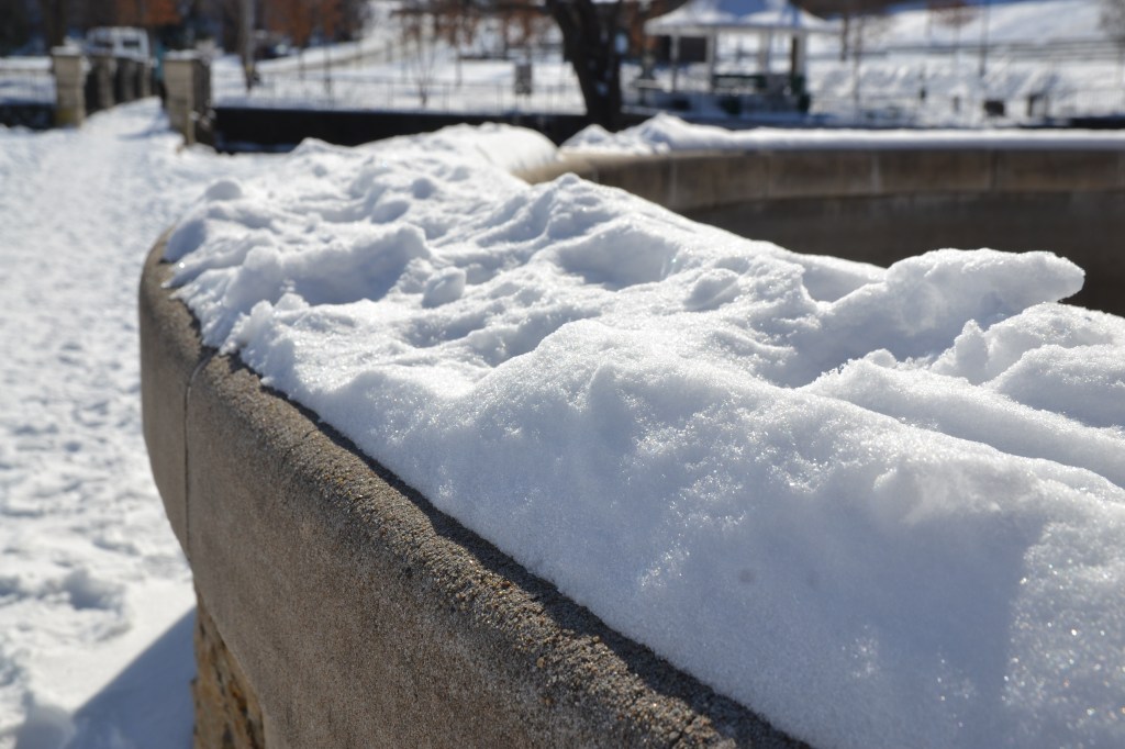 Here are some photos from yesterday’s walk, except for the fountain, there is one photo from a few days ago. I have a little bit of some free time right now being somewhat snowed in. The roads are still a bit of a mess, especially the back roads. We aren’t driving too much and when we went out it was in the afternoon when the roads were not as icy as they are in the mornings and evenings.