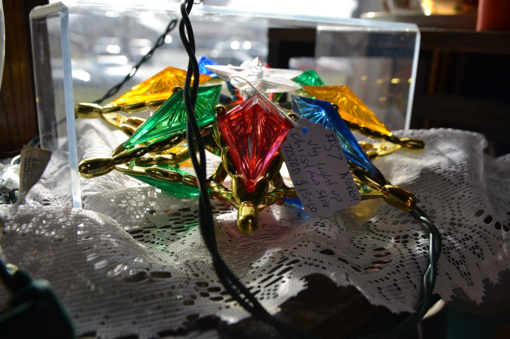I did find a couple of items. Some 1970’s stained glass angel ornaments, and a small sewing box.
