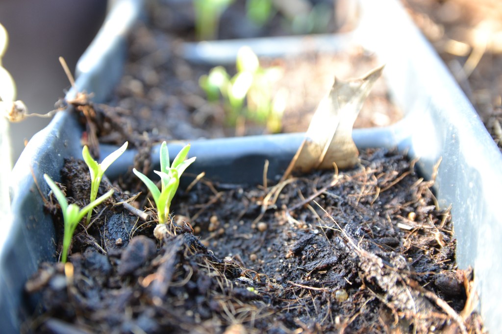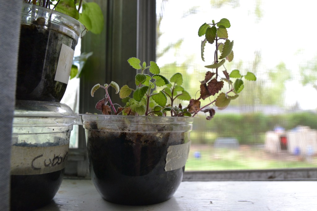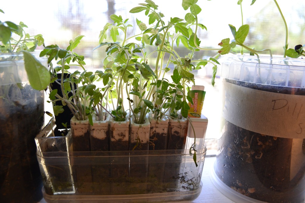 I didn’t wait completely though. I pulled everything that was tucked away down stairs in our garage under grow lights for months now, and brought them out of their cave of hibernation…:Spring is here I was thinking to myself. I mean it looks like Spring to me. Then everyone starts writing about how they have seen buttercups in the snow, so don’t let those tulips trick you.