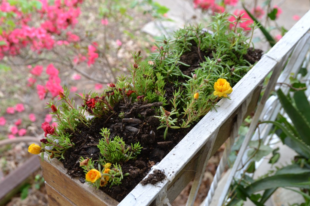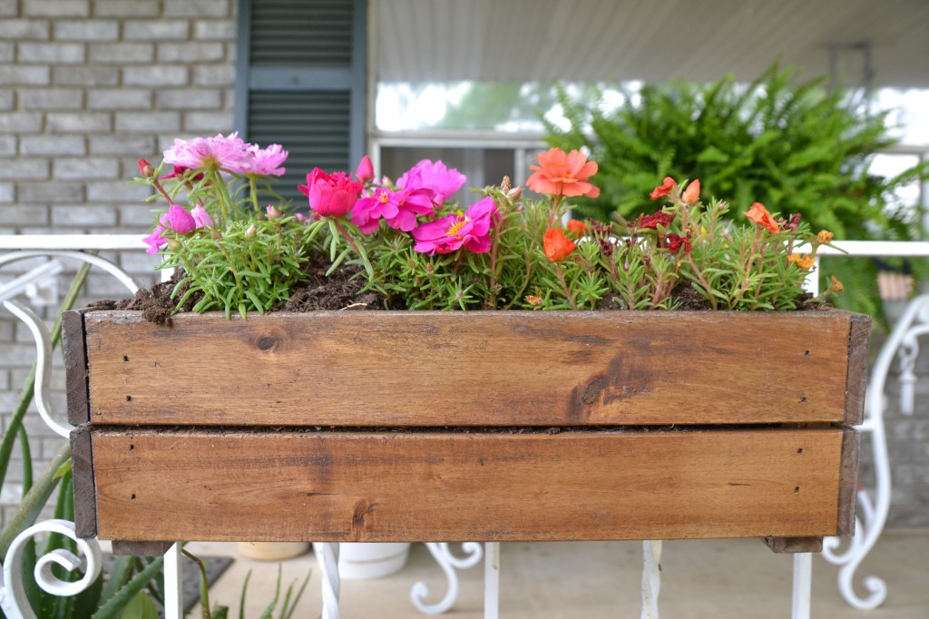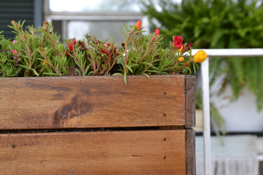 I had to stain and seal the wooden flower boxes after the Winter weather we had. The wood will rot of we don’t try to protect them every year.